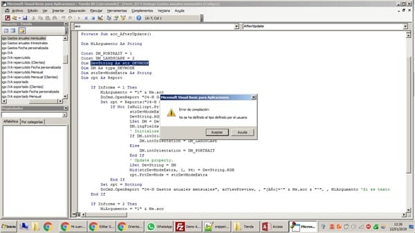 Estoy intentando cambiar la orientación de vertical a horizontal en un informe de Access mediante VBA, modificando, posteriormente, los márgenes a mi gusto. El motivo es que tengo dos informes idénticos, pero uno en horizontal, y otro en vertical (apaisado), y estoy viendo la forma de juntaros en uno.
