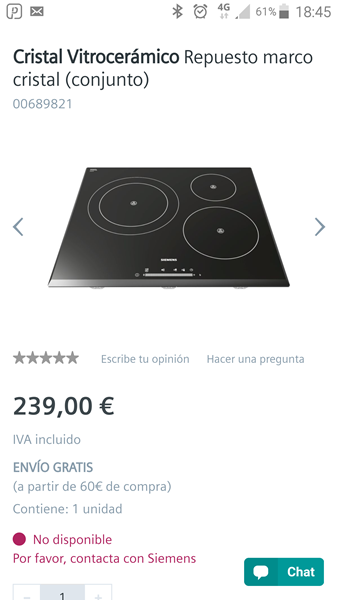 Hace mes y medio se me rompió el cristal de la placa de inducción, llame al seguro y mandaron un técnico para verlo y comprobar el modelo, me dijeron que me la pondrían en una semana. La placa es Siemens y tiene 4 años, he hecho muchas llamadas al seguro reclamando que nadie se haya puesto en contacto conmigo para sustituirme el cristal y me dicen que les está costando encontrar el cristal de recambio. Me ofrecen indemnización, de momento no la he aceptado porque con ese dinero no podría comprarme otra placa y si ellos no encuentran el repuesto yo menos...¿tengo derecho a que me cambien la placa entera si no pueden conseguir el cristal?.
