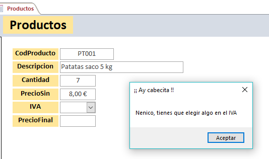 MsgBox "Debe elegir un un valor de IVA", vbInformation, "ALTA DE PRODUCTOS."