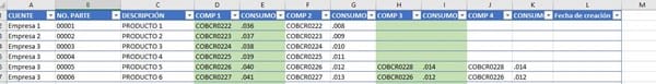 El problema que me genera el código es que no todos los productos llevan 4 componentes como se puede ver en la imagen 1. Cuando elijo un material que tiene 4 componentes solo aparecen los 2 primeros. Realice una prueba en poner un producto con 4 materiales en las primeras filas y el Código solo funciona con los primeros productos.