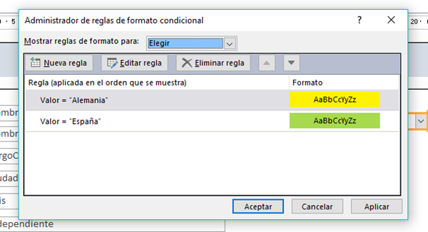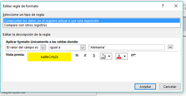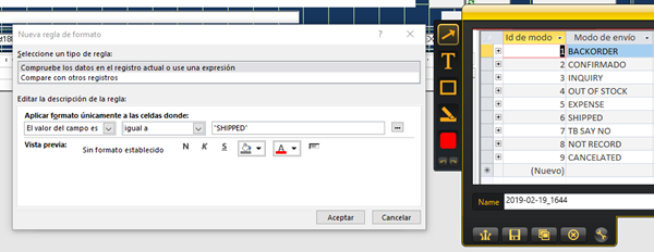 SI SI... puse el enfoque en el desplegable y la opción Formato-Formato Condicional creo haber hecho como me dijiste, pero probé en esos 3 que pinte de colores, y nada pasa en la vista de formulario... raro che...