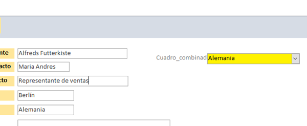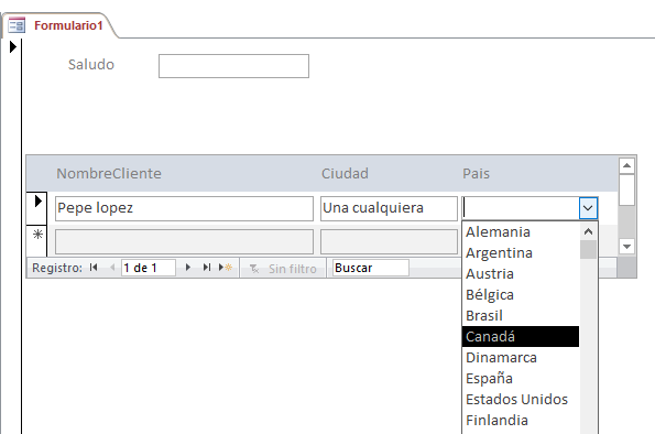 Si tengo el formulario con subformulario, y en el subformulario el control Pais es un combinado donde voy a elegir Canadá