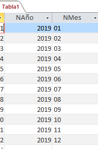 ¿Se puede rellenar campos automáticamente a partir de un dato previamente ingresado? Me explico: lo que quiero hacer es que tengo la tabla "Año" con los campos: "nAño y nMes" y al abrir formulario y crear un nuevo año, por ejemplo "2019" se Rellene la tabla de la siguiente manera: