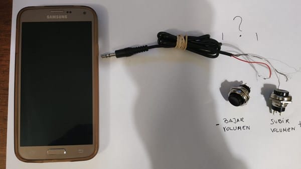 Como conectar dos pulsadores para subir y bajar volumen en un smartphone, a través de un conector jack.