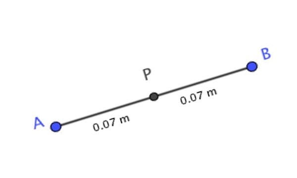 2.1 Determina la intensidad del campo eléctrico en el punto medio P originado por las cargas de los iones A y B.