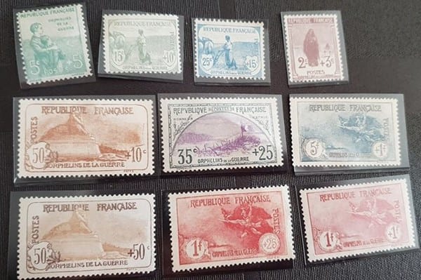 Podría valorar una colección de 10 sellos huérfanos de guerra Francia 1917?