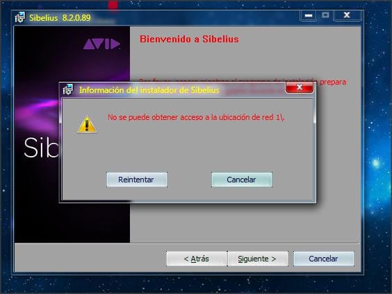 Error al inetentar instalar sibelius No se puede tener acceso a ubicación de red