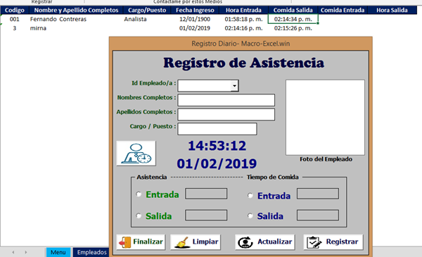 Quisiera desarrollar un control de horarios como el de la imagen adjunta en excel, me podrán ayudar a generar el código