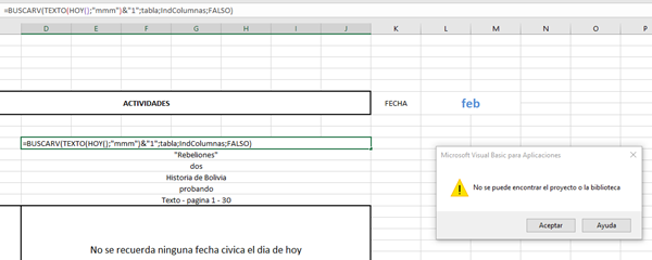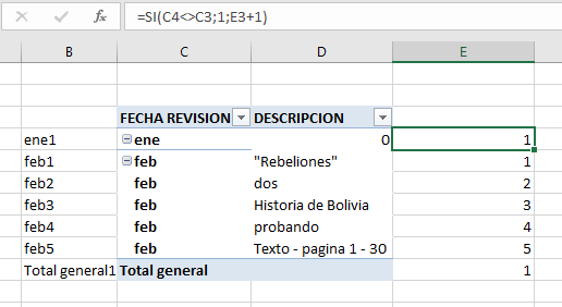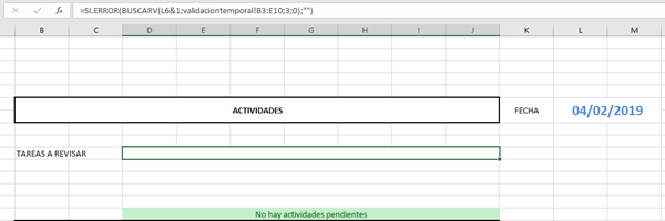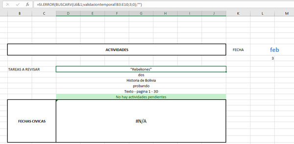 estoy utilizando la fórmula de buscarv para poder encontrar distintos datos mediante la fecha de hoy =hoy(), para que buscarv funcione con resultados repetidos, tuve que hacer que se numeren:=SI(C4<>C3;1;E3+1)