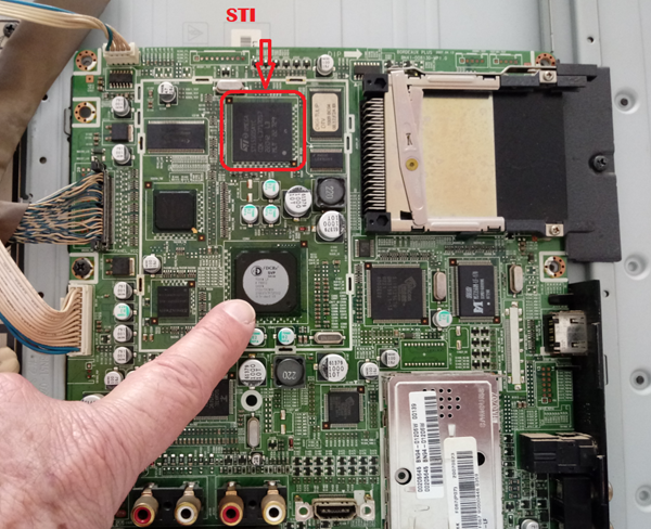 El asunto del enciende y apaga de esos televisores está en una falla del circuito integrado STI. Intenta calentarlo un poco con una pistola de aire caliente. Se le quita. Al enfriar vuelve. Otros hacen lo contrario. Son las soldaduras BGA del circuito integrado. Necesita un rework o más trabajoso un reballing. No obstante también a veces es el propio circuito que falla en sus hilos internos de oro. - Osvaldo Victores Fernández