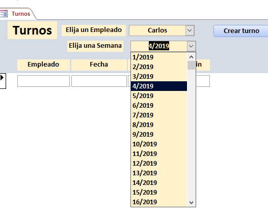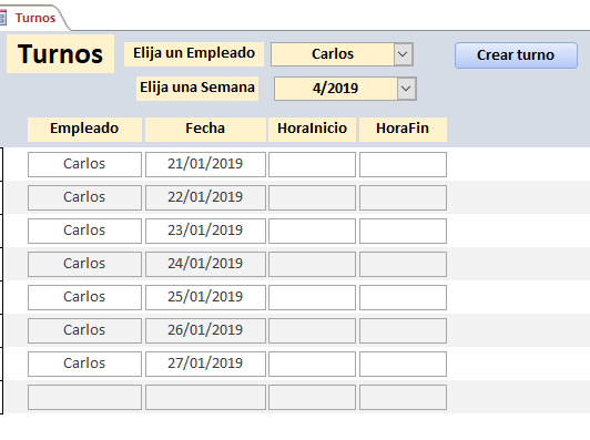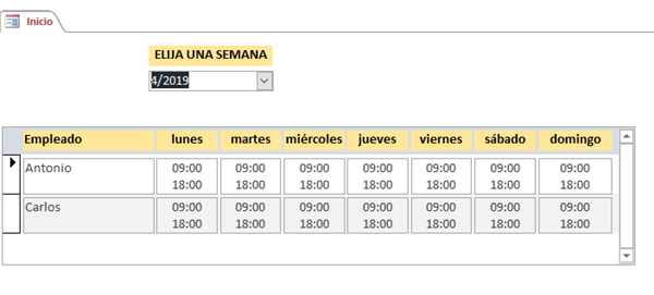 Estoy creando una base de datos para hacer el horario de mis epleados tengo 2 tablas