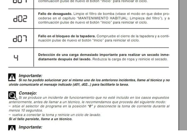 ¡Gracias! Ya probé estas indicaciones del manual, y no funcionaron. Te explico: en un lavado sí se quedó la tapadera interior abierta, y claro, daba este código de error de tapa abierta, pero ahora ya está cerrada y sigue apareciendo...es como si se hubiera quedado en memoria o algo...No he cambiado el blocapuertas porque no fallaba...funciona hasta el bloqueo de seguridad, pero la lavadora se para inmediatamente después de ponerla en marcha y da este código de error...