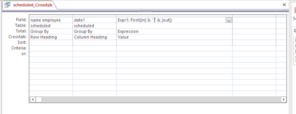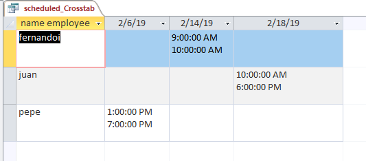 Estoy creando una aplicación de horario semanal de mis empleados en access