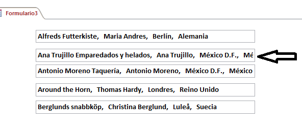 Private Sub Form_Current() Etiqueta34.Caption = NombreCliente & ", " & CargoContacto & ", " & Ciudad & ", " & Pais End Sub