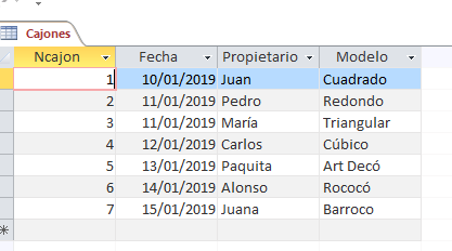 Fernando, no he entendido nada. ¿Un botón para dar de alta un cajón? Para darlo de alta está la tabla Cajones. Para eso con esa tabla se crea un formulario continuo y en el botón ese se pone algo como
