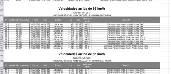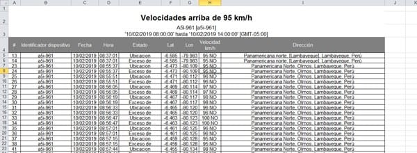 ¿Cómo optimizar reporte de excesos de velocidad? Xls