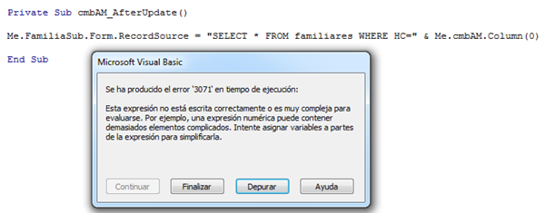 Espero me puedan ayudar con este problema. Resulta que tengo 1 subformulario al cual le quiero pasar información de otra tabla a travéz de un combo o cuadro combinado. Lo he intentado muchas veces pero no lo logra. Tengo dos tablas. 1 se llama Personas y la 2 familiares la cual están relacionadas con un campo x.