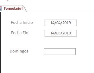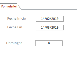 Y quiero en otro cuadro de texto saber cuantos domingos tiene entre las dos fechas que dígito