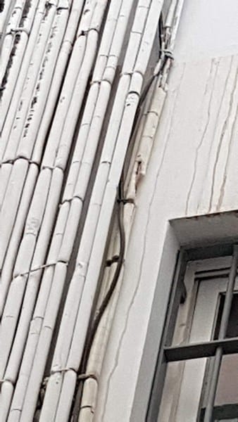 Arriba de la finca el compresor, por la galería bajan los conductos que entran en casa hasta el split. Hasta ahí todo normal.