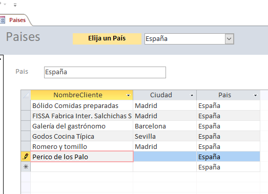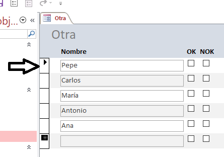 En los formularios continuos, el único registro que existe es el activo, que está marcado por una punta de flecha