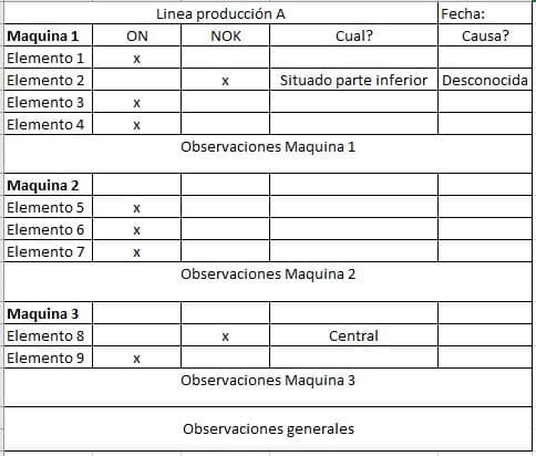 Realmente siempre se tendrá que hacer checklist de todas las máquinas y una vez todo rellenado, evocarlo todo en una tabla para que quede constancia del resultado del checklist un DÍA determinado.