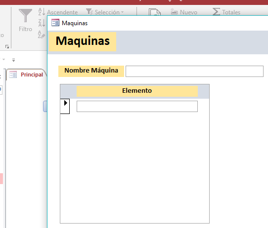 Si pulso el botón, se abre el formulario Maquinas en un registro nuevo para que la dé de alta con sus componentes.