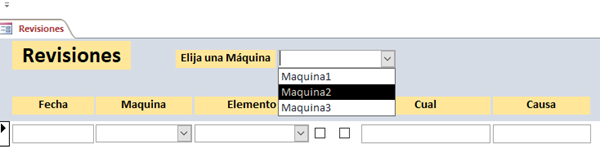 Increíble! Ya casi está.. porque hay algo que creo que a ti te lo hace bien pero a mi no. Ya que si cierro el formulario y lo vuelvo a abrir (imaginando que hago una nueva revisión), al elegir la Maquina 1, me salen los registros antiguos completados y los nuevos por completar y yo quiero que sólo se vean los nuevos. No sé a qué se debe esto.