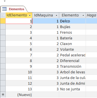 Y referente a tabla Revisiones, de dónde coge los datos de IdMaquina e IdElemento? De la tabla Maquinas y de la tabla Elementos, respectivamente? O todo de la tabla Elementos? Tal y como lo tengo ahora, los cuadros combinados de la tabla Revisiones, me salen números en vez del nombre de las maquinas y elementos porque me coge el Id y no sé como hacer para que me coja otra columna que no sea el Id.