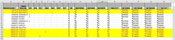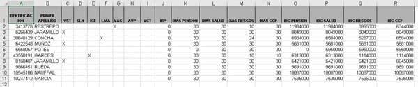 Buenos días Abraham, Gracias por responder.Entrando más en el tema te voy explicar un poco más como funciona o lógica.Estamos hablando de seguridad social que se le paga a un trabajador, Entonces cuanto el trabajador no tiene marcado ninguna X en las columnas de la (E) a la (G) es por qué no tuvo ninguna novedad de ausentismo en el mes, todo los mes se componen de 30 días que Es lo máximo que puede haber en las columnas K, L, M y N, La operación que realizamos acá es precedida a la que tenemos que realizar en columnas de IBC me refiero; columnas O, P y Q. - Carlos arturo Buitrago gaviria
