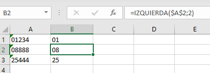 La función EXTRAE de Excel no tiene en cuenta el cero inicial
