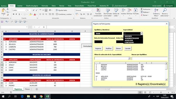 Expertos necesito ayuda ya que recién he entrado al mundo de las macros tengo un formulario que me guarda en el excel nombres especiadad y nota al momento de elegir una especialidad en el combox y le doy guardar se me genera su encabezado cuando encuentra una especialidad nueva y así sucesivamente hasta todo perfecto ahora le he agregado una caja de texto de orden de mérito la cual tiene que ser calculada desde la nota lo he intentado pero solo me sale para un encabezado y no para todos y en el lisbox me cargan todos los encabezados y yo solo quiero los registros. Espero me puedan ayudar haber si le envío mi archivo para que lo revisen.