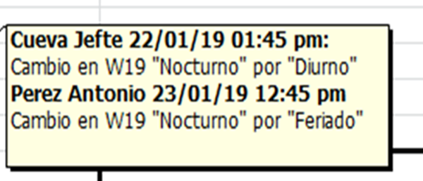 Quiero hacer un control de cambio que guarde el historial de los cambios en un comentario como el que sigue sobre la celda modificada: