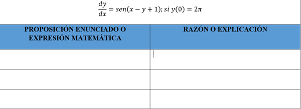 Necesito resolver la siguiente ecuación diferencial de primer orden empleando el método de variables separables, indicando la razón o argumento de cada paso en el procedimiento efectuado.