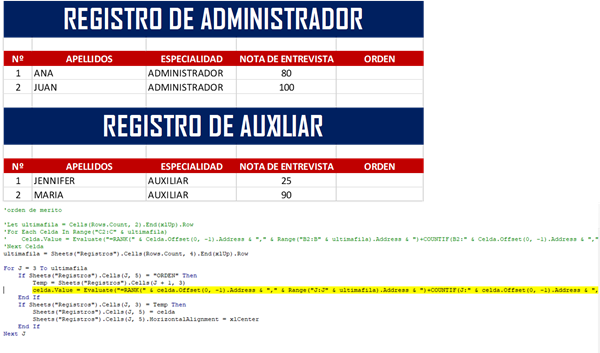 Tengo un Formulario de Postulantes en excel la cual deseo me calcule con macros el orden de mérito a través de la nota.