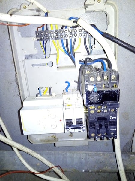 Tengo un problema con el cuadro eléctrico de una bomba sumergible en pozo. El anterior propietario falleció y la bomba lleva años sin funcionar. He intentado accionarla pero aparentemente el cuadro eléctrico ni siquiera hace el amago de funcionar. La bomba está conectada a un cuadro y una caja: