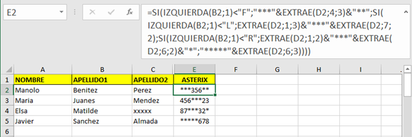 La LO 3/201 de 5 de diciembre, de Protección de Datos Personales y Garantía de los Derechos Digitales, en su Disposición Adicional 7.ª, establece que "En ningún caso debe publicarse el nombre y apellidos de manera conjunta con el número completo del documento nacional de identidad...". A los amigos/as que me quieran ayudar les solicito un "truco" para que una lista en la que los campos de columnas son