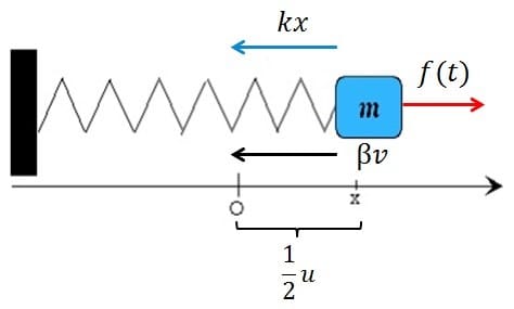 $$\begin{align}&-kx- \beta v+ f(t)=ma\end{align}$$