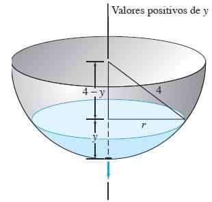Viendo los limites inferiores de integracion cuando t=0 la altura del agua es 4 porque te dice que esta lleno, a partir de ahi va a ir disminuyendo en funcion del tiempo. Y en un tiempo t la altura de agua es cero cuando ya cae del todo