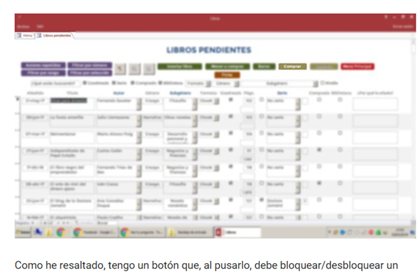 Como he resaltado, tengo un botón que, al pusarlo, debe bloquear/desbloquear un botón en el formulario Menú, que, como veis, está abierto.