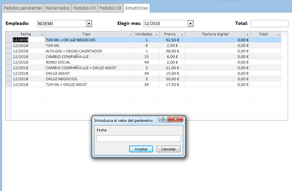 Tengo el siguiente formulario que me calcula por Empleado y fecha cuántos contratos ha logrado realizar. Hasta ahí todo correcto, el problema viene que cuando le pongo el MesAño que voy a consultar me sale ese cuadro de mensaje que no debería salir: