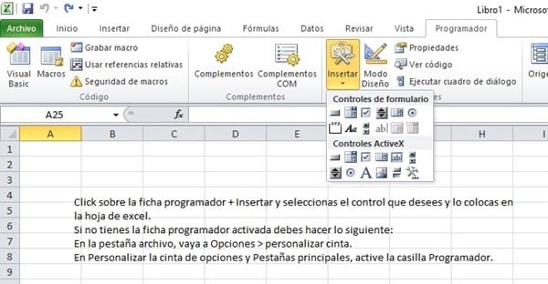 Caja de opciones en una celda de excel