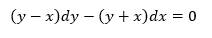 $$\begin{align}&(y-x)dy-(y+x)dx=0\\&(y-x) \frac{dy}{dx}-(y+x)=0\\&(y-x)y'+(-y-x)=0\end{align}$$es una ecuación diferencial exacta
