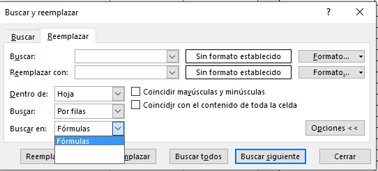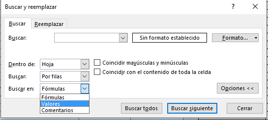 Usando la opción buscar me da a elegir, por fórmula o por valor, la que me ayuda es buscar por valor, al momento de elegir reemplazar solo me deja marcar la opción reemplazar por fórmula, ¿alguna idea de como buscar y reemplazar por valor?.