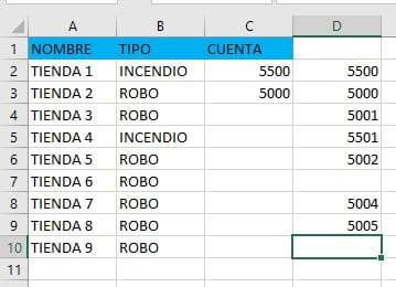 Lo que quiero, es tener un número de correlativo que se asigne automáticamente, en este caso, hay dos tipos o dos bases desde las cuales se empieza, si la celda B2 es "INCENDIO", el número de correlativo empieza desde el 5500, si la celda B2 es "ROBO" el número de correlativo empieza desde el 5000. Lo que quiero es que por ejemplo, ya en las siguientes filas, al momento de poner ROBO o INCENDIO, automáticamente en la columna C, aparezca el número de correlativo siguiente, pero... No quiero que se repitan, y también ver si es posible que si hay un número de correlativo que no esté lo tome. Por ejemplo, asigné el número de correlativo 5009 en la celda C4, pero luego lo borré, que cuando escriba en la celda siguiente o en cualquier otra la palabra ROBO, me asigne automáticamente el correlativo 5009, porque ese no está usado, aunque el correlativo vaya por el número 5012. Es como para no dejar ningún número sin usar a pesar de que se haya borrado más de alguno.