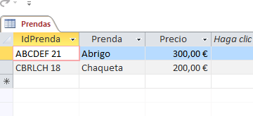 Prenda, precio y observación. Tanto en la una como en la otra se llaman igual
