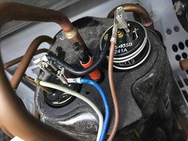 Cuando pongo en marcha la secadora y toco el compresor, este no vibra. Y si toco los tubos de cobre, estos están fríos todo el rato. El ventilador que hay en la parte frontal de la secadora que funciona a 230w está todo el rato apagado. (Solo arrancaba un momentito cuando hacía aquel puente en el cable del sensor y el relé hacia doble click).
