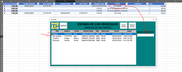 Es decir cuando de click sobre un Vehículo me aparezca en el textbox(el de la imagen) el estado que se encuentra ese vehículo.