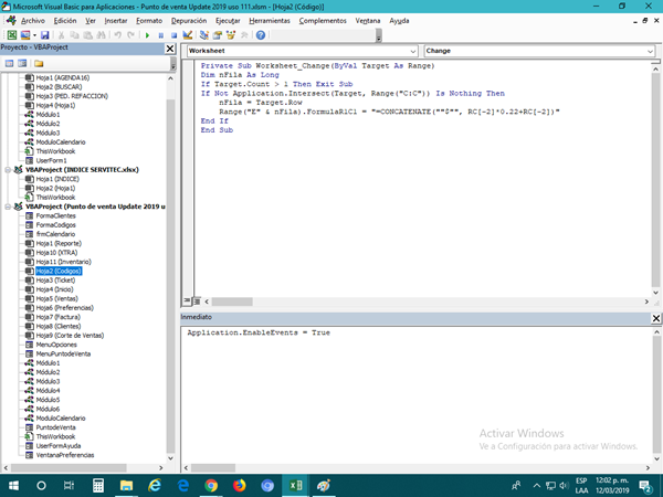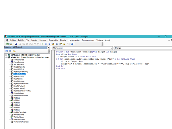 Buen día Abraham, ya elimine todo lo innecesario y ya corre bien la macro como me indicaste, pero me di cuenta de que trabaja la macro cuando directamente sobre la celda le introduces algún valor, efectivamente introduce la fórmula donde debe, todo bien, pero cuando mediante el formulario de ventana códigos introduces los datos no aparece la fórmula, y realmente así es como se le utiliza mediante los formularios, ¿cómo puedo hacer que la macro trabaje con el formulario?
