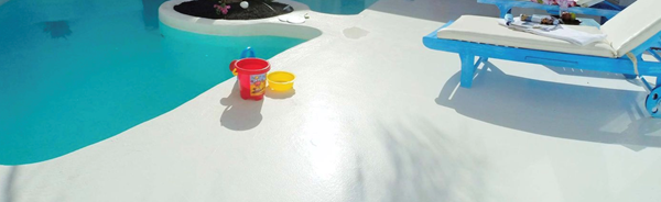 ¿Sabéis cómo se llama el material o cemento que se usa para el exterior de la piscina para que todo quede blanco? Me explico, en vez de poner por fuera de la piscina piedra, azulejos o tablones de madera he visto que se pone como una especie de cemento blanco para que todo se integre con la piscina. Supongo que tendrá que ser antideslizante (o directamente es como la pintura epoxi que se pone en los garajes...). Muchas gracias.