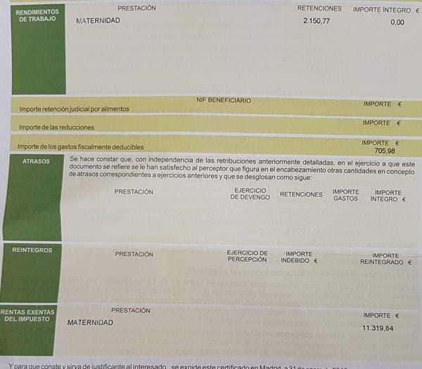 Me ha llegado una carta de la Seguridad Social donde me desglosa lo que me pago por la baja de maternidad en 2018.